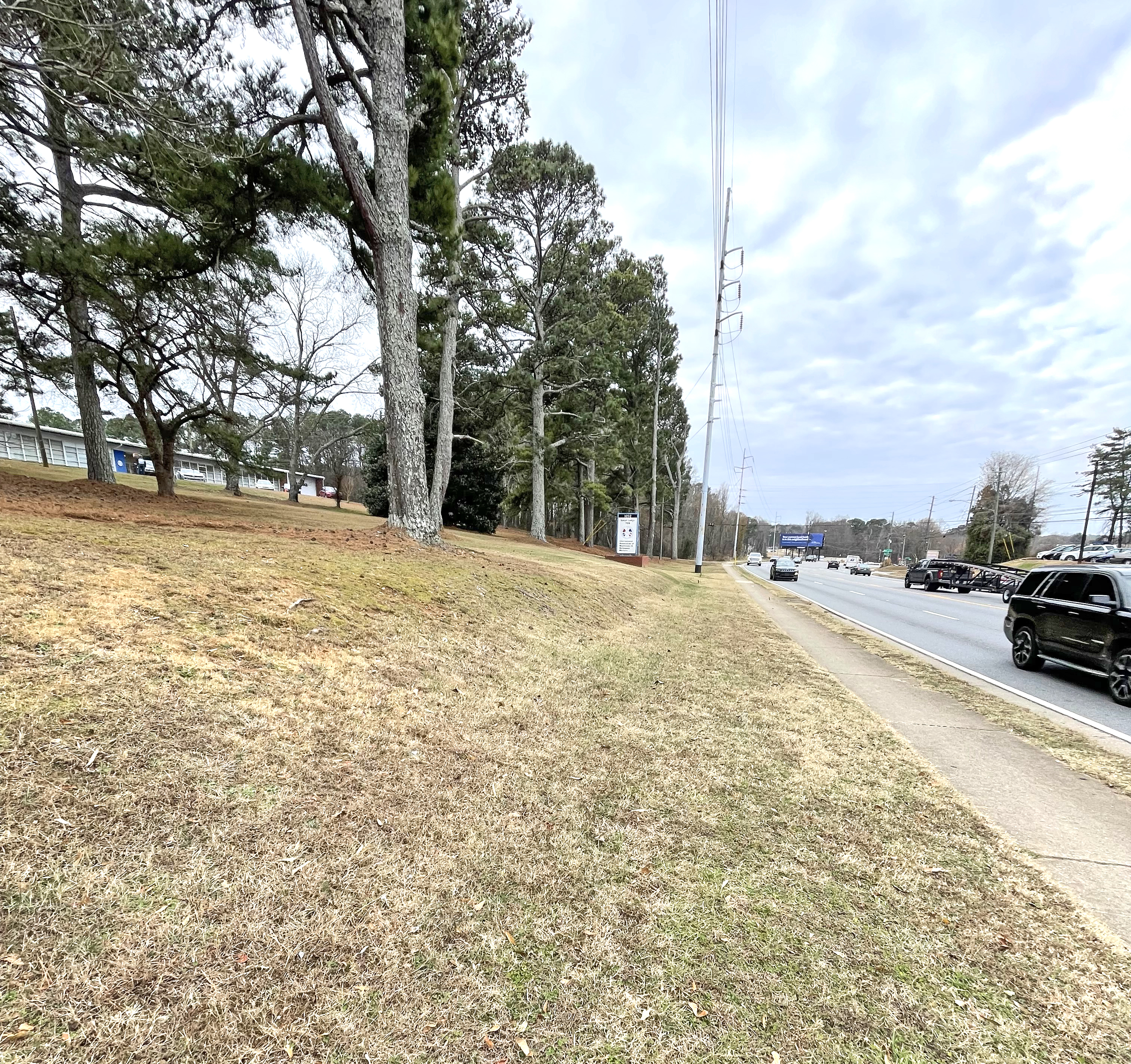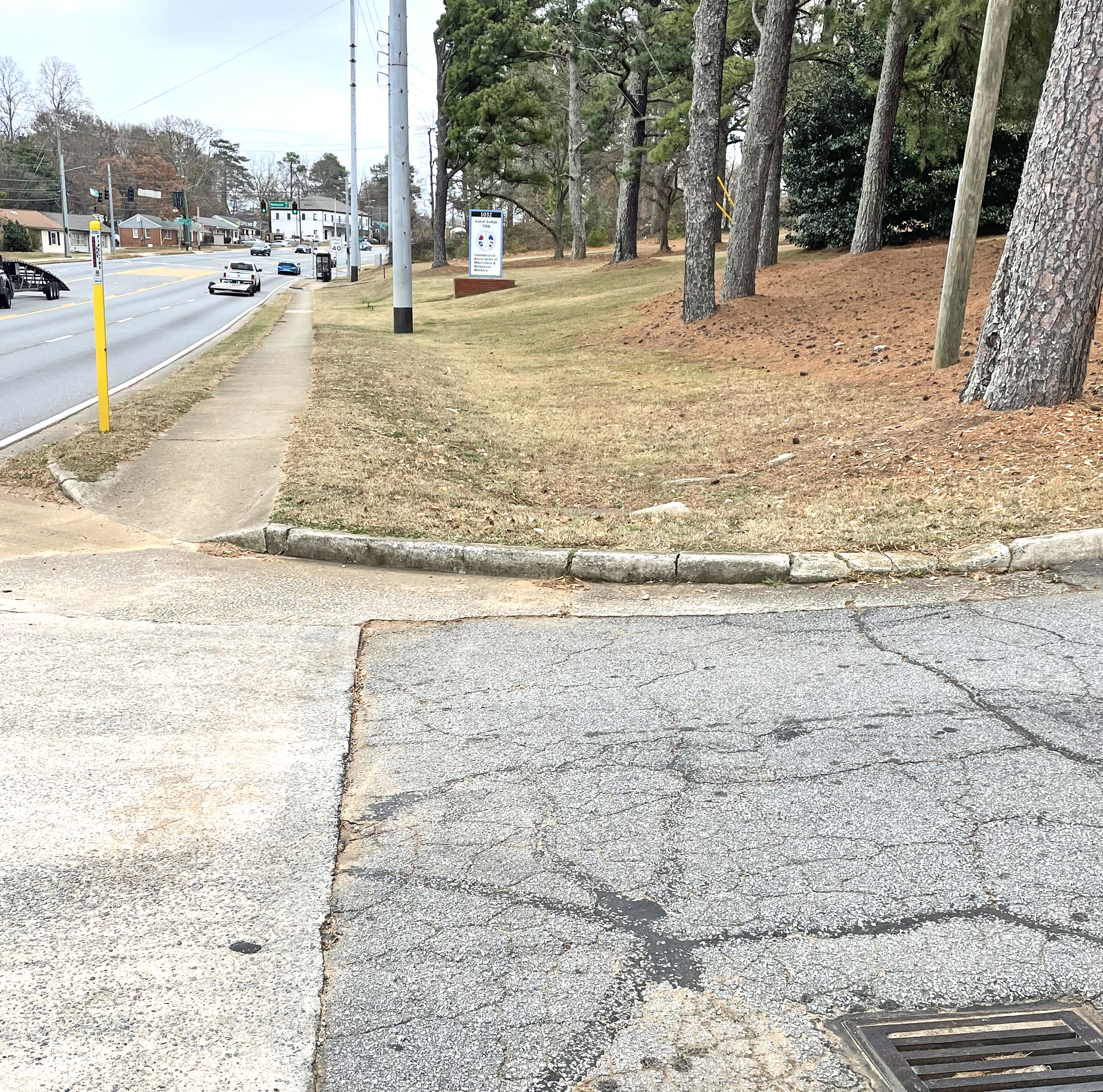 View traveling west with the IAM Union Hall on the left of the South Marietta Parkway.
