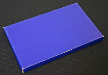 The blue flap slides from under the written section and the lens holding the five coins enters the box from the