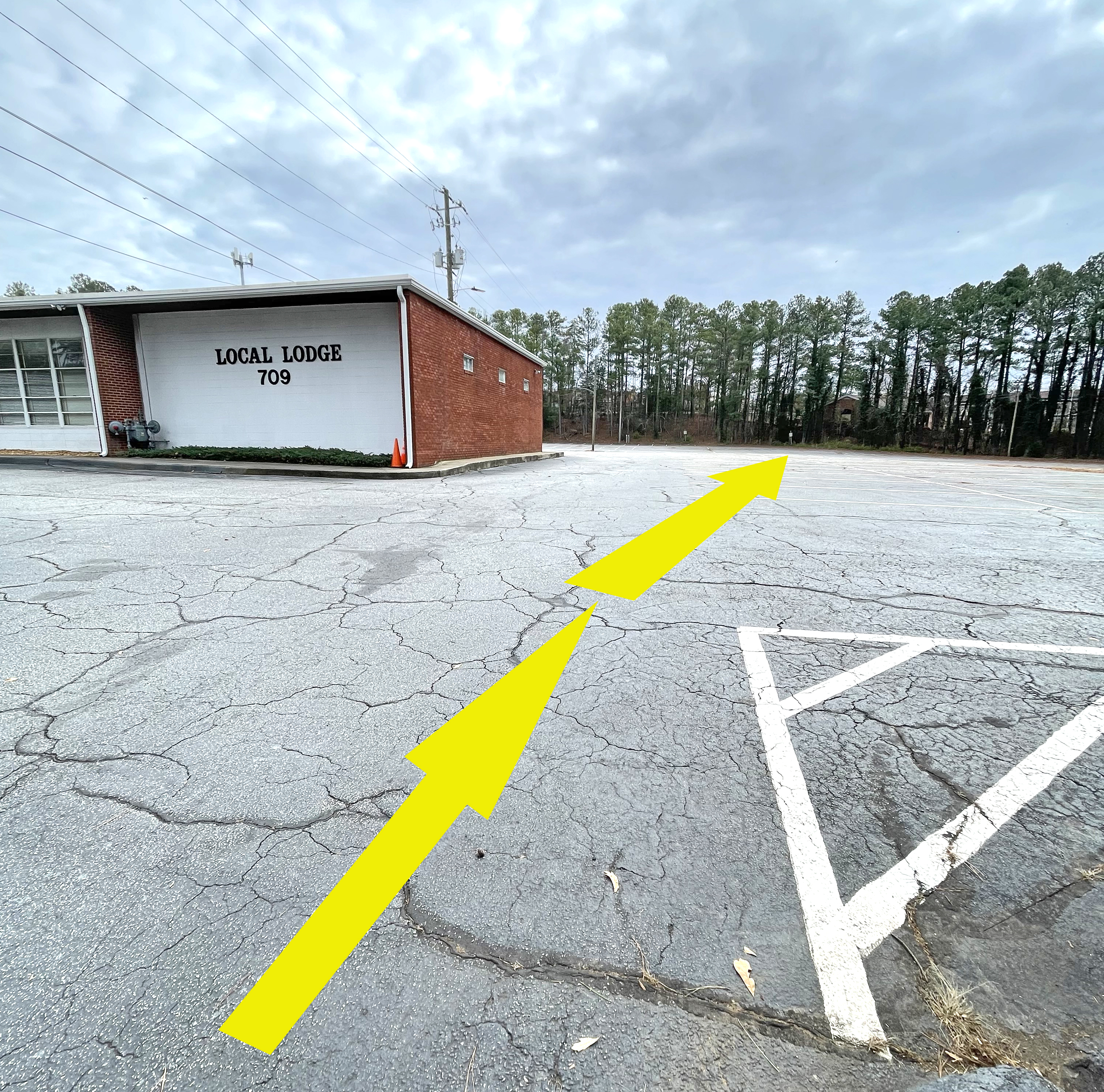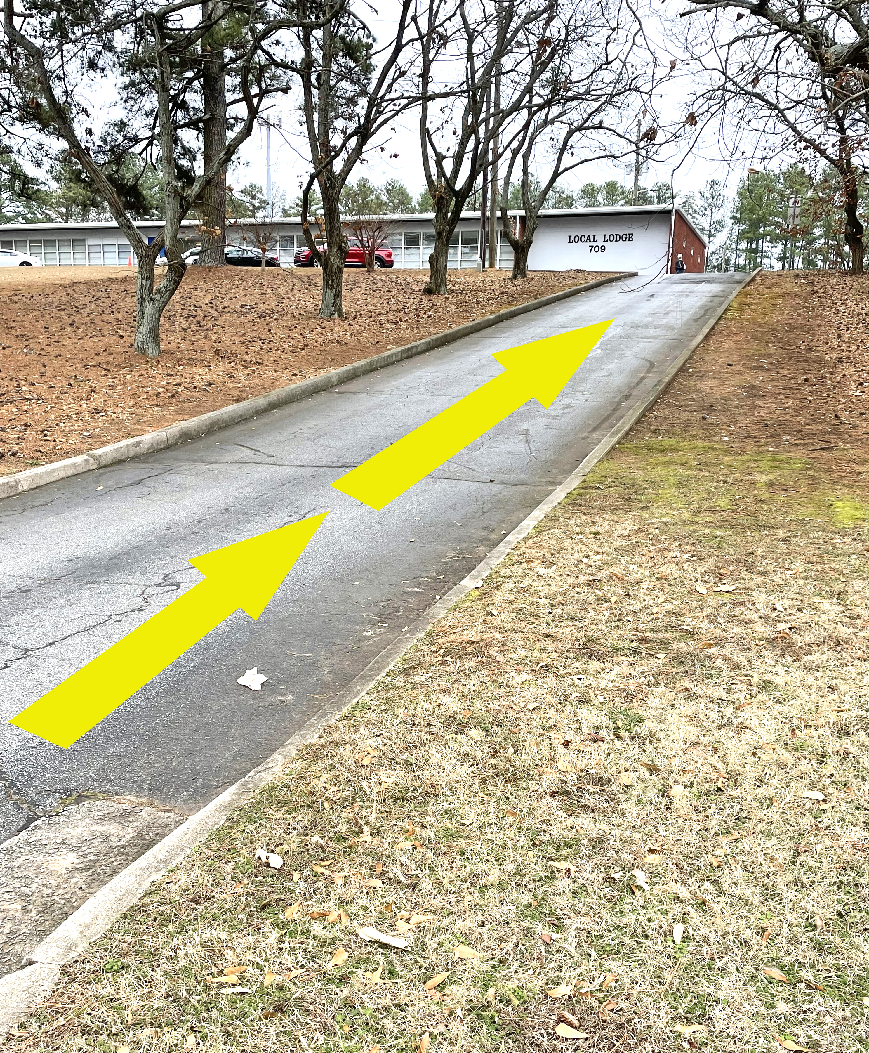 The access driveways into and out of the IAM Union Hall are one-way.